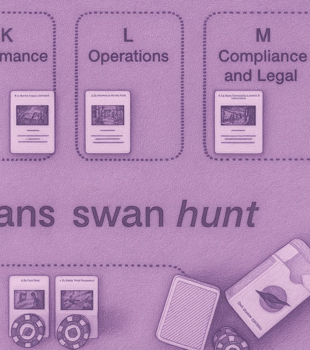 In an era where the unexpected has become routine, it is no longer enough to plan the future on paper. Organisations need spaces where they can play through possible futures together, spaces where they can rehearse responses to disruption, explore the upside of threats, and practise the difficult art of fear-forward strategy. Swan Hunt, by The Purple Swans, is the example of such a space: a structured way for leadership teams to hunt for their most disruptive threats and decide how they will respond.